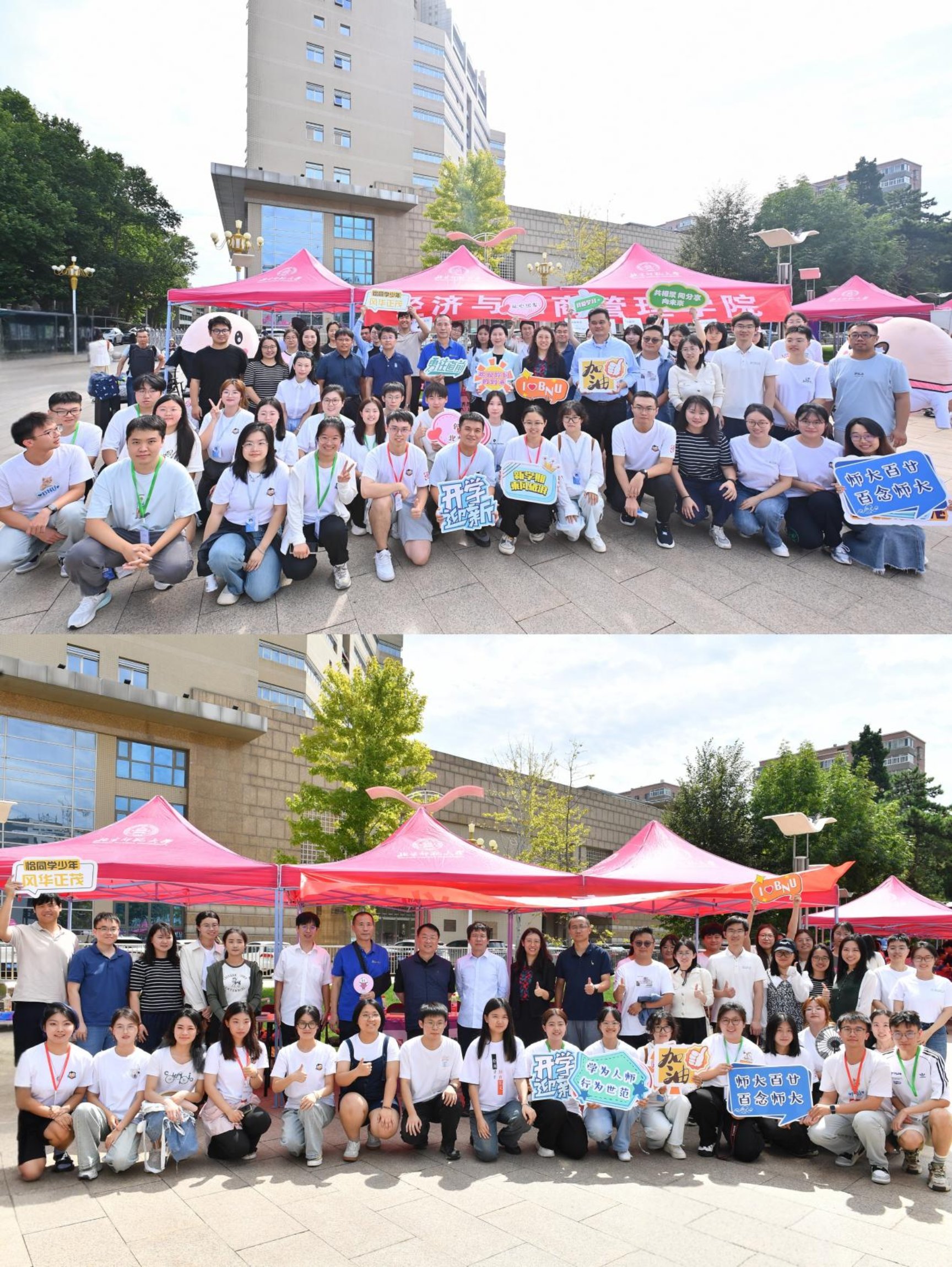 In the morning, Beijing Normal University Party Secretary Cheng Jianping, President Yu Jihong and other School leaders visited the welcome site, asked about the progress of work, as well as the registration of freshmen. The leaders communicated and interacted with teachers, students, volunteers and representatives of new students, and took a group photo to mark the beautiful moment.