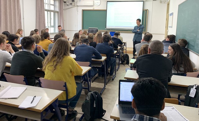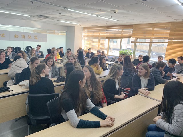 In the beginning, Professor Guo Ji delivered a speech on China’s Business Environment for the Belgian students and our students, on which both students exchanged on the economic and business environment of both countries.