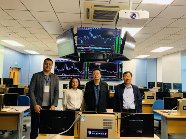 On the morning of November 9th, The team visited the Experimental Center of Shanghai University of Finance and Economics. Professor Jin Hongfei, Associate Director of the Experimental Center of Shanghai Finance College, and Professor Xie Fei extended a warm welcome to the Beijing Normal University delegation. Professor Xie Fei first introduced the situation of the Experimental Center in Shanghai. The Shanghai Finance Experimental Center was established in 2015 and put into use in 2018. It aims at "teaching support, scientific research promotion, platform sharing and resource integration". It has gathered all the scattered labs under management and at present, there are 29 specialized laboratories in the experimental center, including 2 national experimental centers, 1 key laboratory of the Ministry of Education and 1 Key laboratory of Shanghai Municipality. Although the staff was only 10 people, it can support the smooth operation of the whole experimental center. One important reason is the adoption of cloud intelligent management platform, which can be realized through self-service platform from laboratory, workstation, equipment, virtual image reservation to equipment fault repair, greatly improving the management efficiency. The teachers of the center demonstrated on the scene the cloud intelligent management platform, especially the virtual desktop image system -- the laboratory is no longer confined to the traditional physical space, but can turn any computer connected to the Internet into a laboratory resource through the cloud service. Taking the experimental center as the platform, the university also established the Fintech Research Institute, which has a unique position and role in promoting the exchange and cooperation between industry, science and research. After the discussion, Director Xie Fei led the team to the laboratories on the 5th to 11th floor of the experimental center for field visits. Some of the laboratories were using for lectures, and they all had a first-hand experience of the use of the Experimental Center.