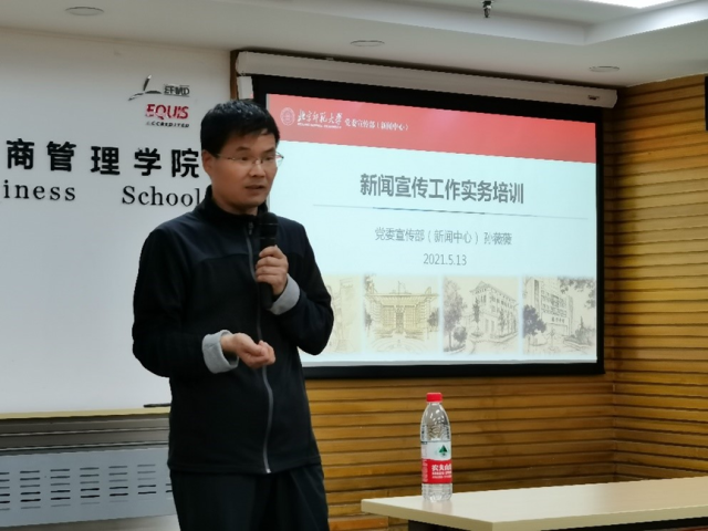 Press publicity is a key work in the construction and development of the school, which plays an important role in publicity and guidance, image display and cohesion gathering. In order to help all the administrative teachers to form a systematic cognition of the attributes, functions and communication of the news media to improve the ability and skills of publicity work, on the afternoon of May 13th, the school held a practical training lecture on publicity work in the conference room 9406 of JINGSHI HOTEL. Sun Weiwei, Associate Director of the Party Committee Propaganda Department and News Center, gave the lecture. Based on her own experience in the school's external publicity and the construction and operation of the network new media platform, Ms. Sun first introduced the orientation and task of the university's propaganda work and the main news platforms of the school. Subsequently, she focused on the standard of news release writing and the matters for attention in proofreading, introduced the choosing of annual key topics, encouraged teachers to contribute articles actively and work together to do a good job in news publicity.