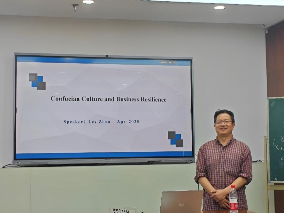 During the interactive communication session, the participating teachers and students had in - depth discussions around issues such as the measurement methods of Confucian culture, the specific impact paths of traditional culture on corporate resilience, and the relationship between the founder's culture and organizational behavior. Professor Zhao patiently responded to everyone's questions, pointing out that the impact of Confucian culture on enterprises' crisis - response capabilities was more reflected in the self - discipline and collective - collaboration awareness inspired when formal institutions failed. He also emphasized that when researching traditional culture, attention should be paid to the scientificity and empirical feasibility of indicator selection, and in the future, it could be further analyzed in combination with the cultural background of the regions where enterprise founders are from. Regarding the idea of cross - national comparative research proposed by some teachers and students, Professor Zhao fully agreed and encouraged everyone to base themselves on China's reality and explore the unique value of local culture in the economic and social fields.