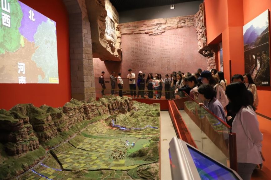 Subsequently, the teachers and students of the college followed the footsteps of the builders up the stairs to the Youth Cave on the cliff of Taihang Mountain, and experienced the amazing feat of the Communist Party members and the people of Linxian County who fought hard, cut through the walls and stones, and forged the "artificial Tianhe", and experienced the hardships of "Yu Gong rose for ten spring and autumn years, divergingZhangheRiver and wetting the field". They witnessed the magnificence and greatness of the Red Flag Canal project, which took the bull by the horns and fought hard for ten years.