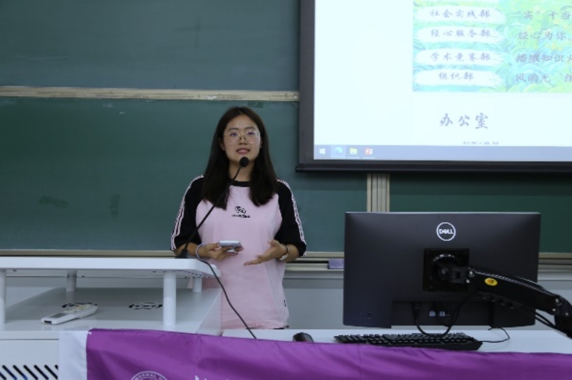 Chang Xinyang, Secretary of the Youth League Committee and full-time counselor of BNUBS, combined with the report of the 14th Party Congress of the School, made clear expectations and requirements for the youth members. She encouraged all students to strive to be first-class students with four distinctive logos, to show youthful actions, highlight youthful style, and contribute youthful strength in promoting the construction of a powerful country and the great cause of national rejuvenation, and to strive to write a youthful chapter that holds true to the responsibility of Chinese modernization. Then , the Youth League Committee of BNUBS, the Student Union and the Graduate Student Union recruited new students. Zhang Buxin, the Associate Secretary of the Youth League Committee, Jiang Jin, the Minister of personnel of the Student Union of the School of Youth League Committee, and Xie Jiaqi, the Director of the Research Committee of the School, introduced the structure and work content of each student group to the students respectively, expecting more students to join the student organization of BNUBS.
