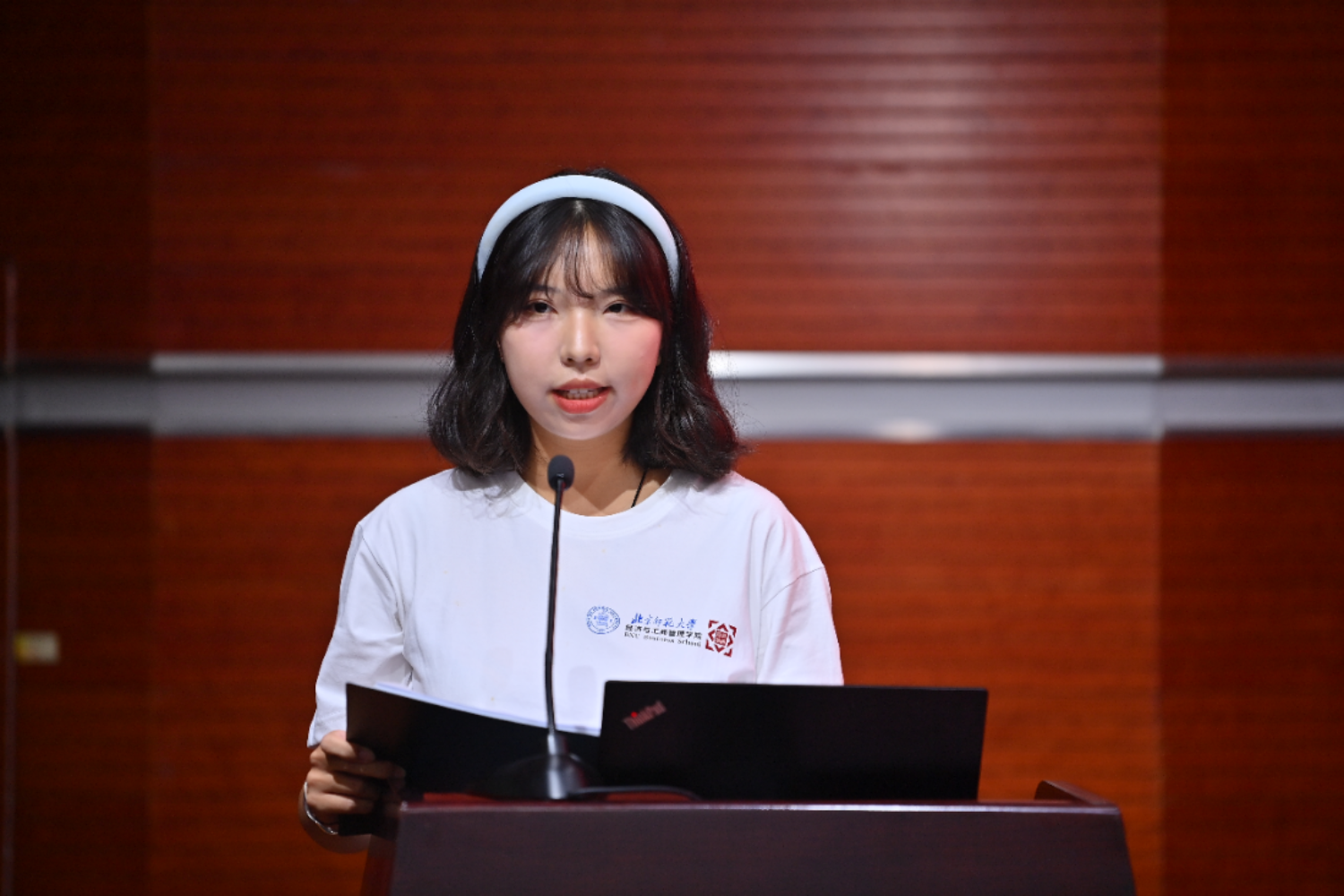 Zheng Zixuan, majoring in International Economics and Trade in the class of 2024, delivered a speech as the representative of the new undergraduate students, expressing her admiration for Beijing Normal University and its predecessors and her longing for college life, and encouraging herself to continue to inherit the mission and responsibility of the economic management of Beijing Normal University as a new student. At the same time, she also looked forward to her new dream in BNUBS, determined to become a talent needed by the country, and promised to integrate her personal pursuit into the development of the country, inherit the fine traditions of Beijing Normal University, and become a responsible person for national rejuvenation.