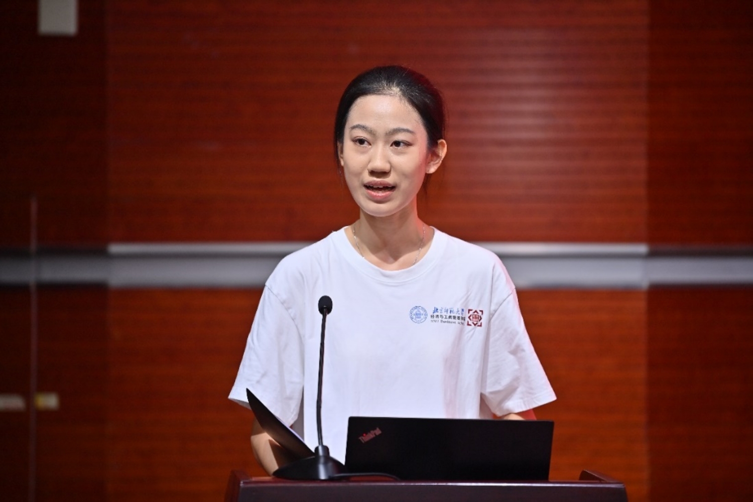 Wu Tong, a 2024 graduate's student in Accounting, spoke as a representative of new graduate students. She encouraged the students to pursue their postgraduate studies not only as a process of pursuing knowledge and searching up and down, but also as a challenge to explore themselves and pursue their dreams. She called on the students to actively climb the peak of knowledge and expand the width of life, and at the same time to give back to the society with gratitude. She called on the students to uphold the spirit of Beijing Normal University, study and practice hard, contribute to the development of the country and the nation, and strive to be good young people in the new era.