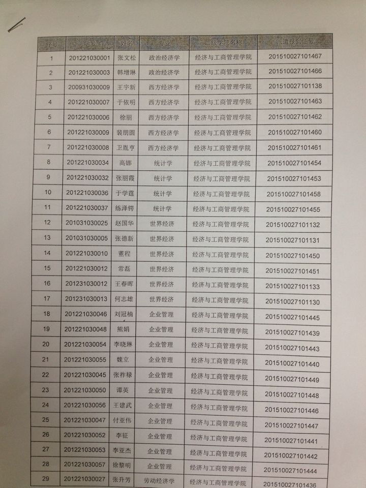 2015届研究生报到证(第一批)及党组织关系介绍信(第一批、第二批)名单
