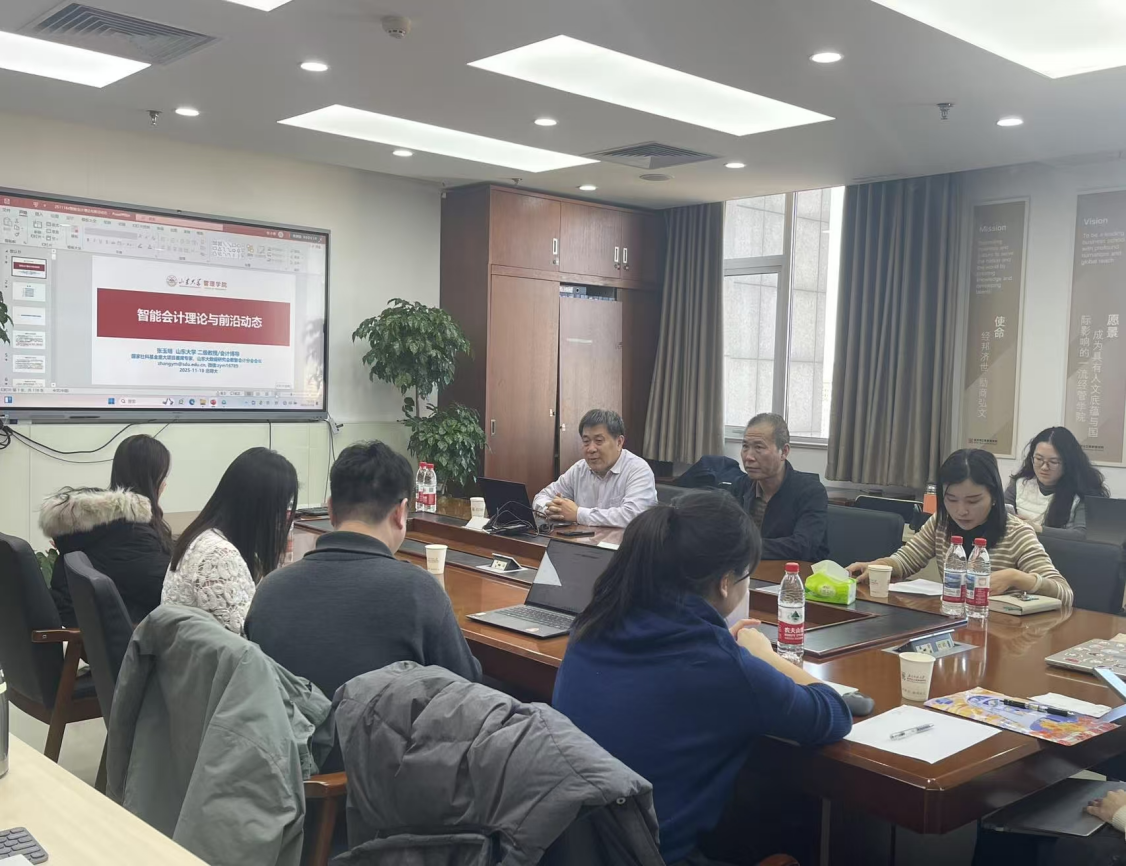 202511月18 日至19日,道具自慰 “京师经管・名家讲坛” 在后主楼1722接连开展两场学术活动,邀请山东大学张玉明教授、南开大学万广华教授分别围绕智能会计、AI与收入分配主题分享,累计80 余名师生参与,活动分别由道具自慰张会丽教授、胡聪慧副院长主持,为道具自慰师生搭建了高质量学术交流平台。