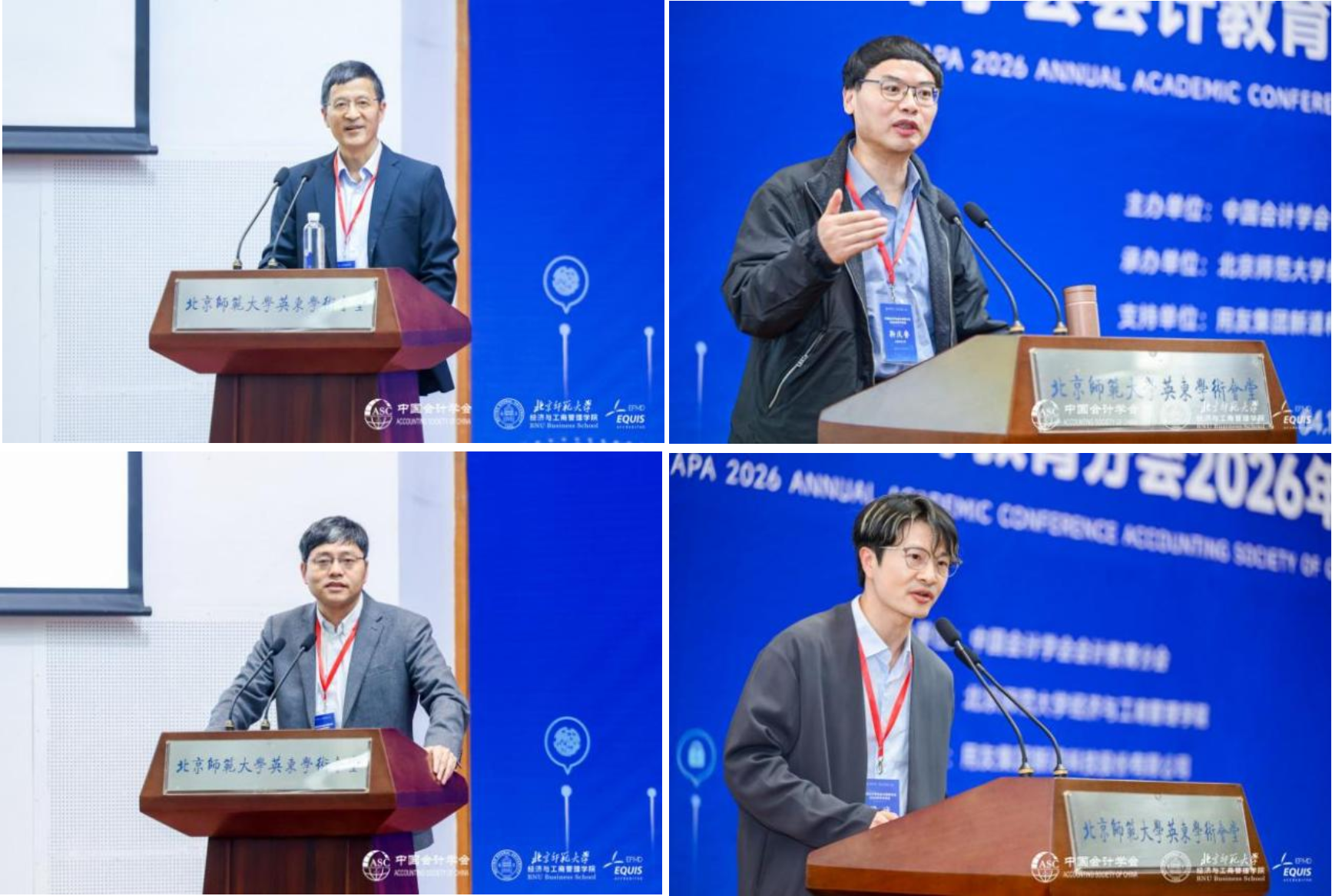 4月18日上午举行会议开幕式及主题演讲。道具自慰 常务副校长王守军、中国会计学会副秘书长胡宁、中国会计学会会计教育分会会长靳庆鲁分别致辞。王守军副校长代表北师大对与会嘉宾表示诚挚欢迎,强调2026年是十五五规划的开局之年,也是贯彻落实党的二十届四中全会精神的关键一年,他指出本届年会主题紧扣中央决策部署和对接国家战略需求,并期望通过会议实现思想碰撞和凝聚共识,推动会计学科发展。胡宁副秘书长代表学会祝贺年会顺利召开,指出会计教育分会应结合本届年会在新质生产力场景下的会计教育转型、人才培养模式创新等前沿问题做出突破口,真正让中国会计自主知识体系“进课堂”、“进头脑”。靳庆鲁会长在致辞中介绍了中国会计学会会计教育分会历史沿革及运行方式,指出本次年会主题是对会计学科转型发展及新质生产力培育的深度思考,强调会计学科必须主动思辨求变,加快理论重构与方法创新,以适配国家战略与时代需求,期望与会专家就前沿问题深入探讨,推动会计理论研究与实践发展。开幕式由道具自慰 崔学刚教授主持。