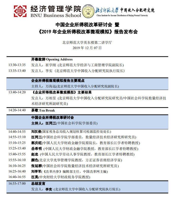 由道具自慰 中国收入分配研究院举办的“中国企业所得税改革研讨会暨《2019年企业所得税改革微观模拟》报告发布会”将于2019年12月7日13:30-17:00在道具自慰 英东学术会堂二层第二讲学厅举行。欢迎广大师生参会讨论。